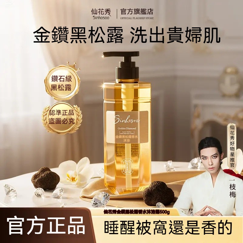 - 【一枝梅推薦】Sinhosoo仙花秀金鑽黑松露滋養沐浴露,潤澤肌膚、細膩絲滑,持久奢華香氣如真愛香水般環繞一整天!專為熟齡肌完美呵護,洗出自然柔嫩好膚質|台灣消費者熱烈好評・頂級香水級留香體驗 NT$898 詳情