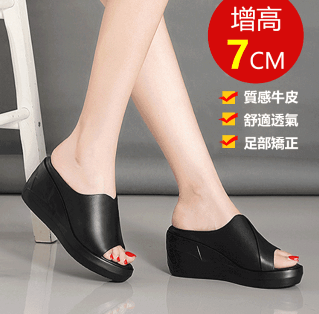 - 【一秒長腿】魚嘴坡跟增高拖鞋,讓你輕鬆提升魅力! 增高7cm,360°貼腳呵護,舒適感滿分! 人體工學設計,穿著不累腳,全天候舒適! 採用頭層牛皮,透氣不臭腳,完美呵護雙足! 尊享輕奢高端質感,特別 NT$890 詳情