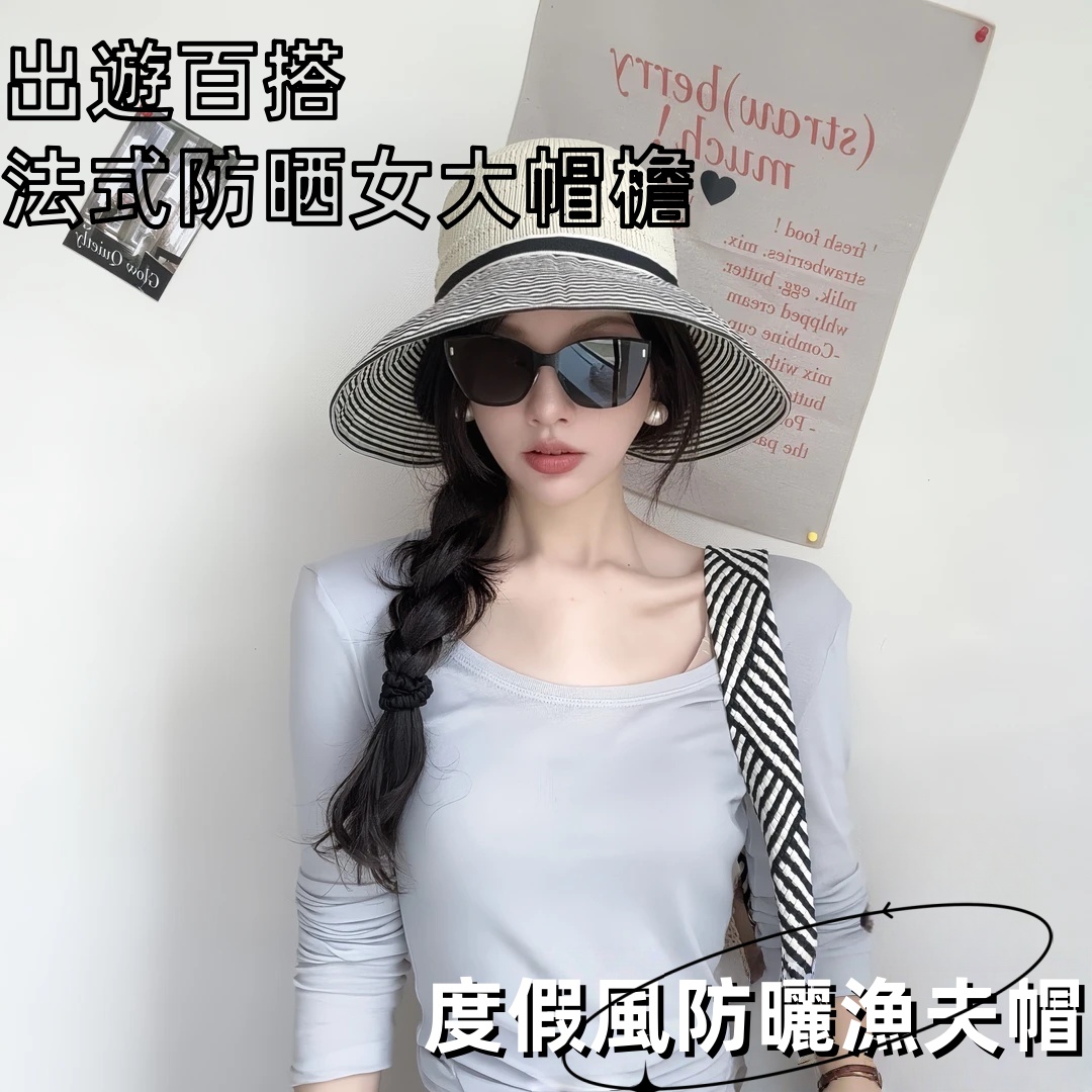 - 小衆高級感法式赫本風漁夫帽女時尚複古條紋防曬遮陽帽子 NT$799 詳情
